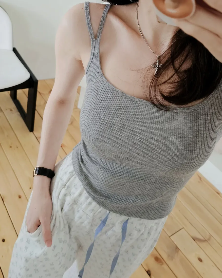 附襯墊的細肩帶上衣~胸型和領型都美美的