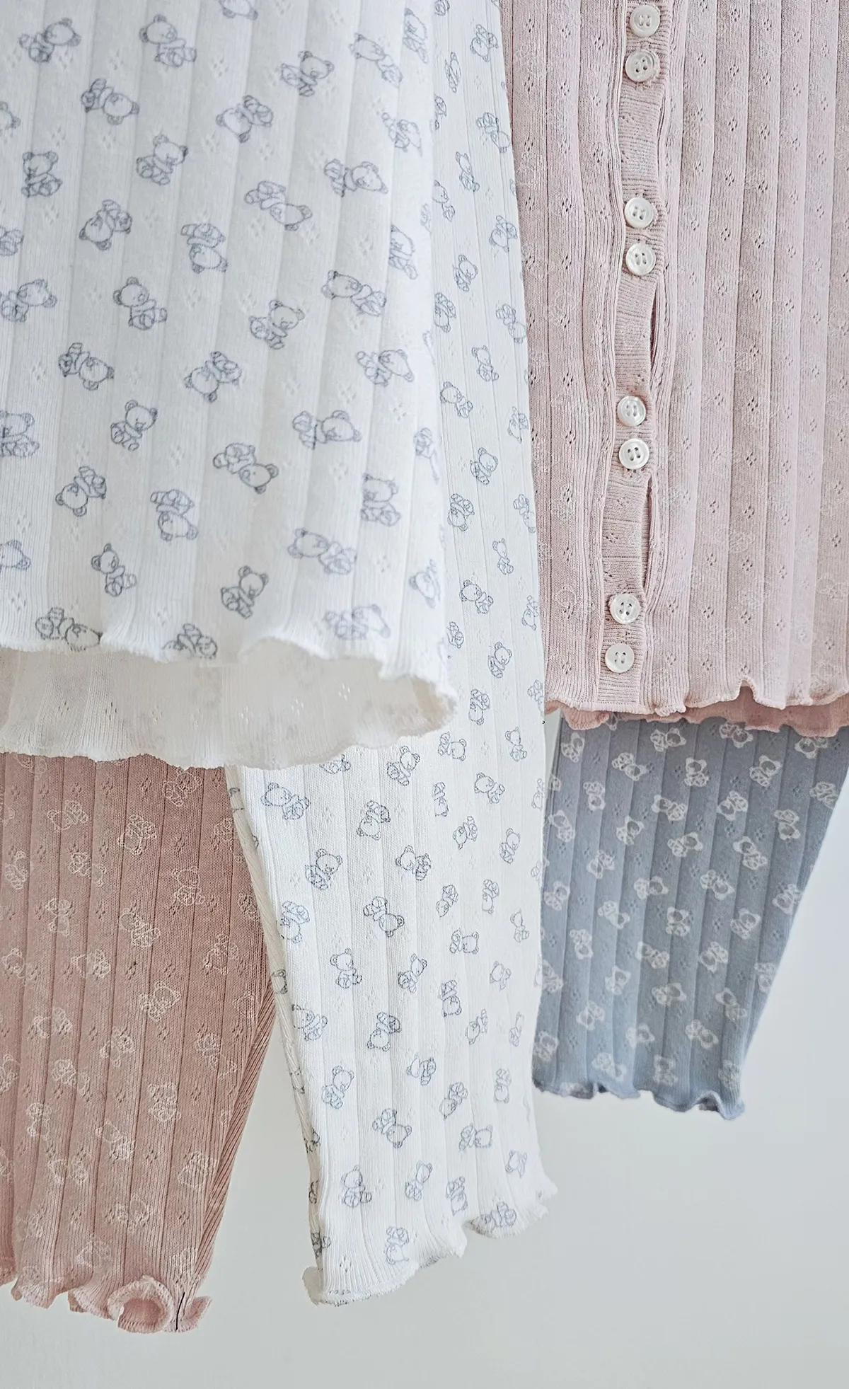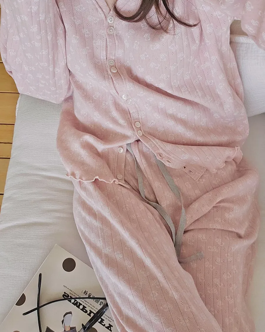 女孩都無法拒絕的熊熊印花,超治癒居家服套裝,開襟外套式的身上,讓居家服更有實穿性~木耳邊細節也可可愛愛 100%棉質面料,親膚舒適透氣,質感珍珠母貝釦,長褲兩側有口袋,可愛配色抽繩~ 休閒版型+鬆緊腰圍,建議XS~小L可以穿 100%棉 ★搭配:坑條Bratop雙肩帶上衣 (( 歐尼161cm/47kg ))