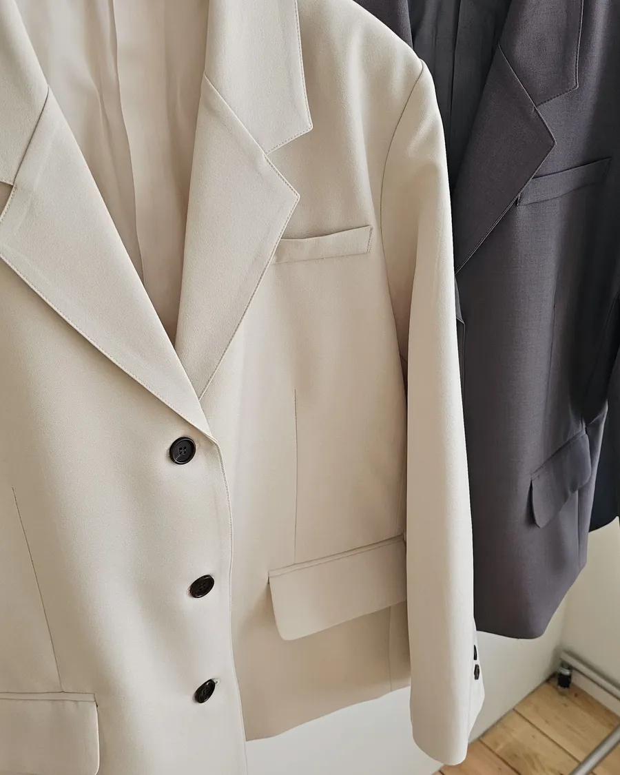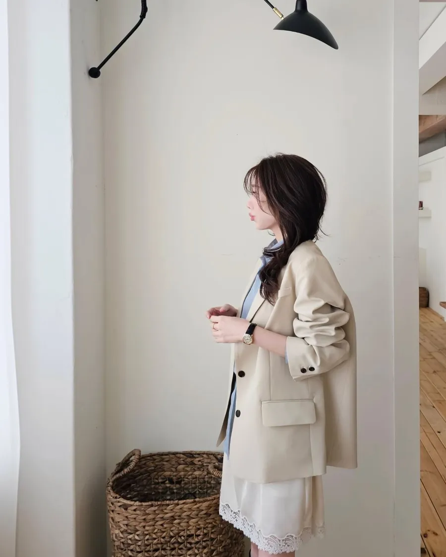 杏色,高級灰,黑色 時髦精的廓形西裝外套+今年流行的蕾絲單品,直接就是時髦法式女孩😎😎 非常淺的杏色提亮氣色,高級感暗灰和經典黑色~ 觸感精緻高級,手感非常細緻,面料薄而有挺度,輕盈不壓身👌 整件都有高質感全內裡,兩側口袋,極薄墊肩,霧面琥珀釦~ 微寬版型,建議XS~L穿著